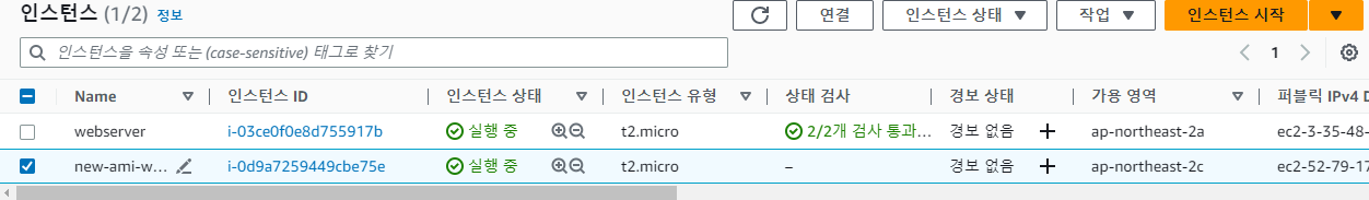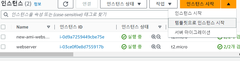 'new-ami' 이미지를 이용하여 'new-ami-webserver'인스턴스를 생성해볼 것이다.