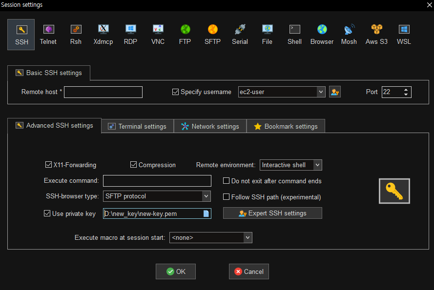 MobaXterm에서 aws.tar파일을 드래그해서 업로드 한다.